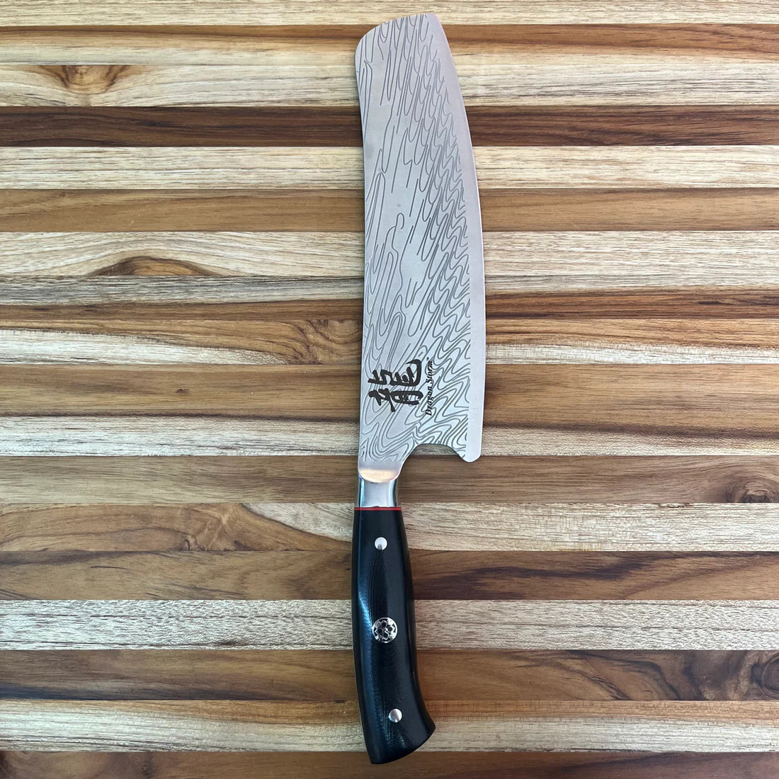 The "Fusion" knife is keystone to Dragon knives because it exudes innovation and quality craftsmanship. A worldly blade makes an optimal selection that is perfect for nearly all jobs in the kitchen. It's like a Japanese santoku, and European chef's knife in one: thin, precise, and durable. "Rocks" like a dream.